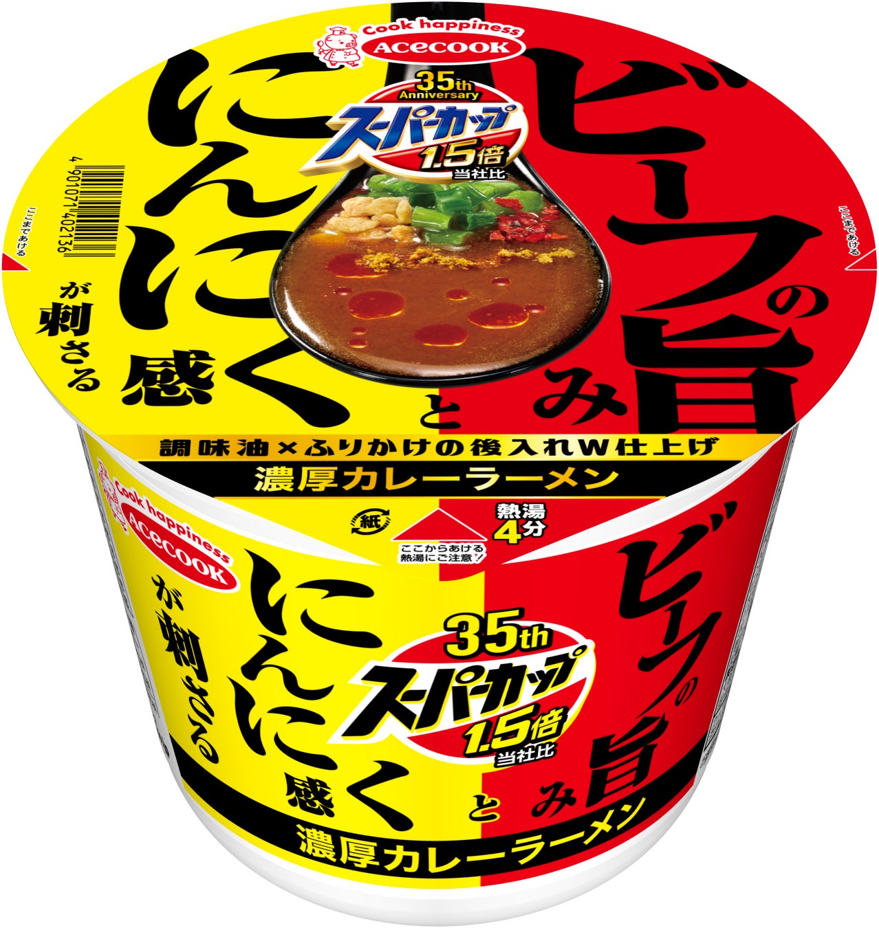 スーパーカップ1.5倍 ビーフの旨みとにんにく感が刺さる濃厚カレーラーメン 新発売
