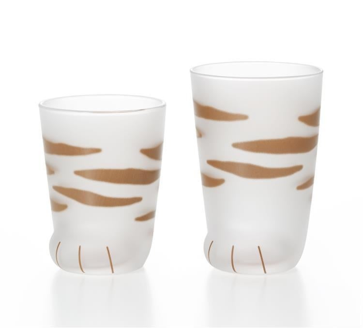牛乳やミルクティーなどを入れるとネコの柄が引き立つ、ネコ足をモチーフにした グラスのセット。