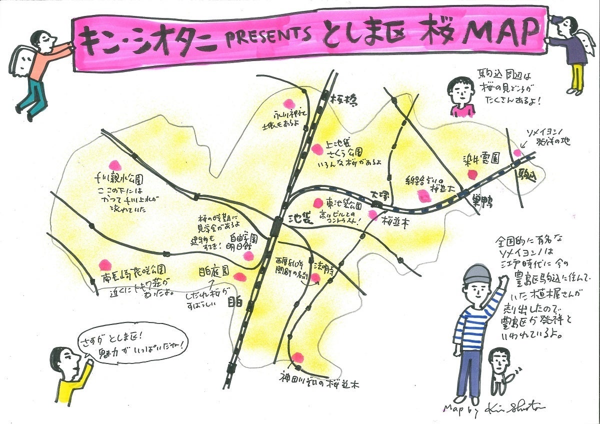 全国を旅してきたイラストレーターのキン・シオタニが、自ら豊島区を歩き、見たもの、聞いたもの、調べたものを「としま区百景」と題して写真やイラストをご紹介いたします。