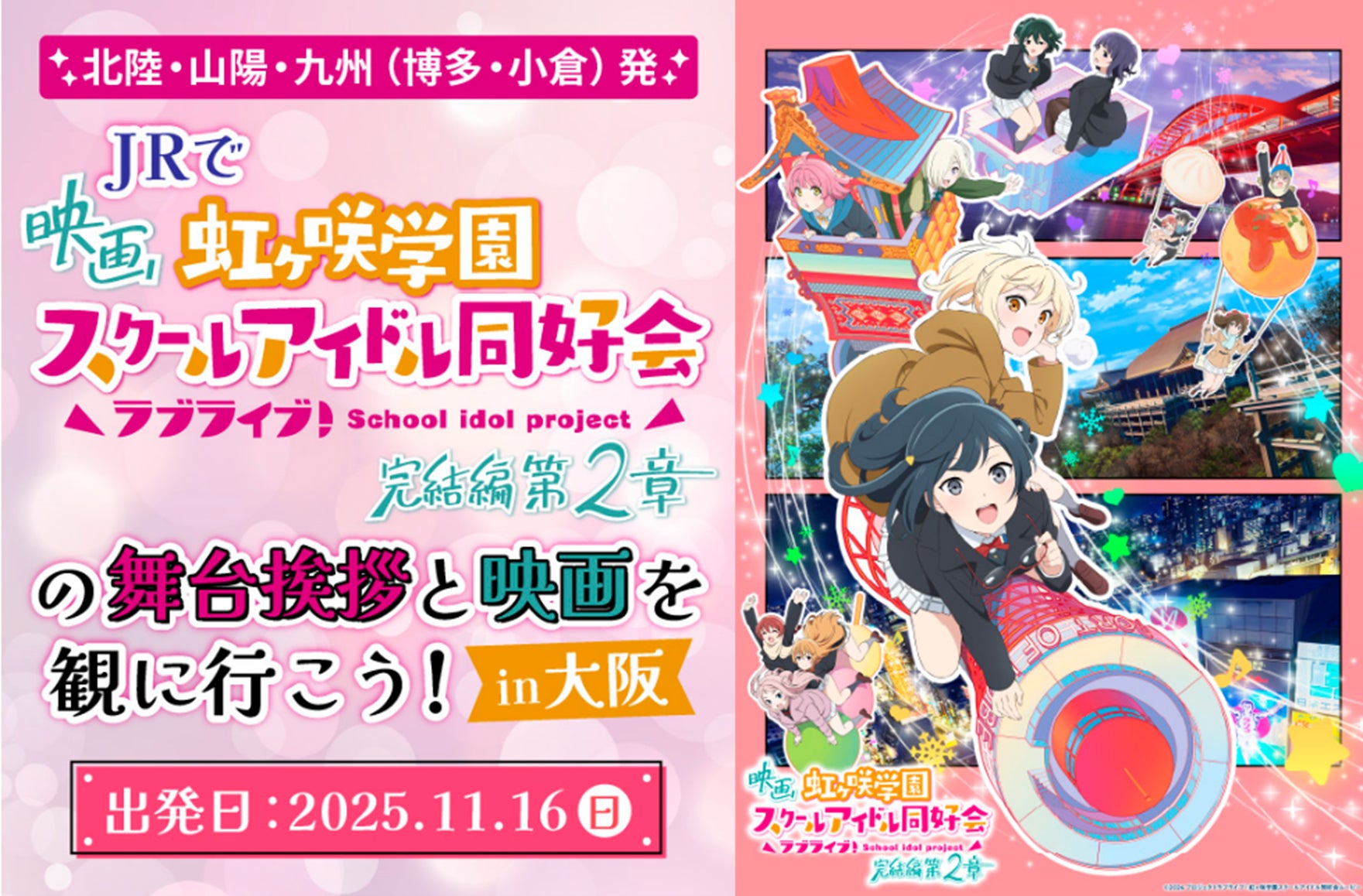 JR西日本では、映画『ラブライブ!虹ヶ咲学園スクールアイドル同好会 完結編 第2章』の公開を記念して実施する「ニジガクとつながる ときめきKANSAI物語」の企画詳細を発表いたします。今回は本キャンペーンの最新情報の告知に加え、第一弾でお知らせした「おでかけ応援アプリ『KANSAI MaaS』を活用した周遊企画」や、「『tabiwaトラベル』での映画舞台挨拶セット商品の再販売」、さらに「JR西日本グループのメタバース空間『バーチャル大阪駅 4.u(フォーユー)』を活用した取り組み」等、詳細の企画内容をお知らせします。