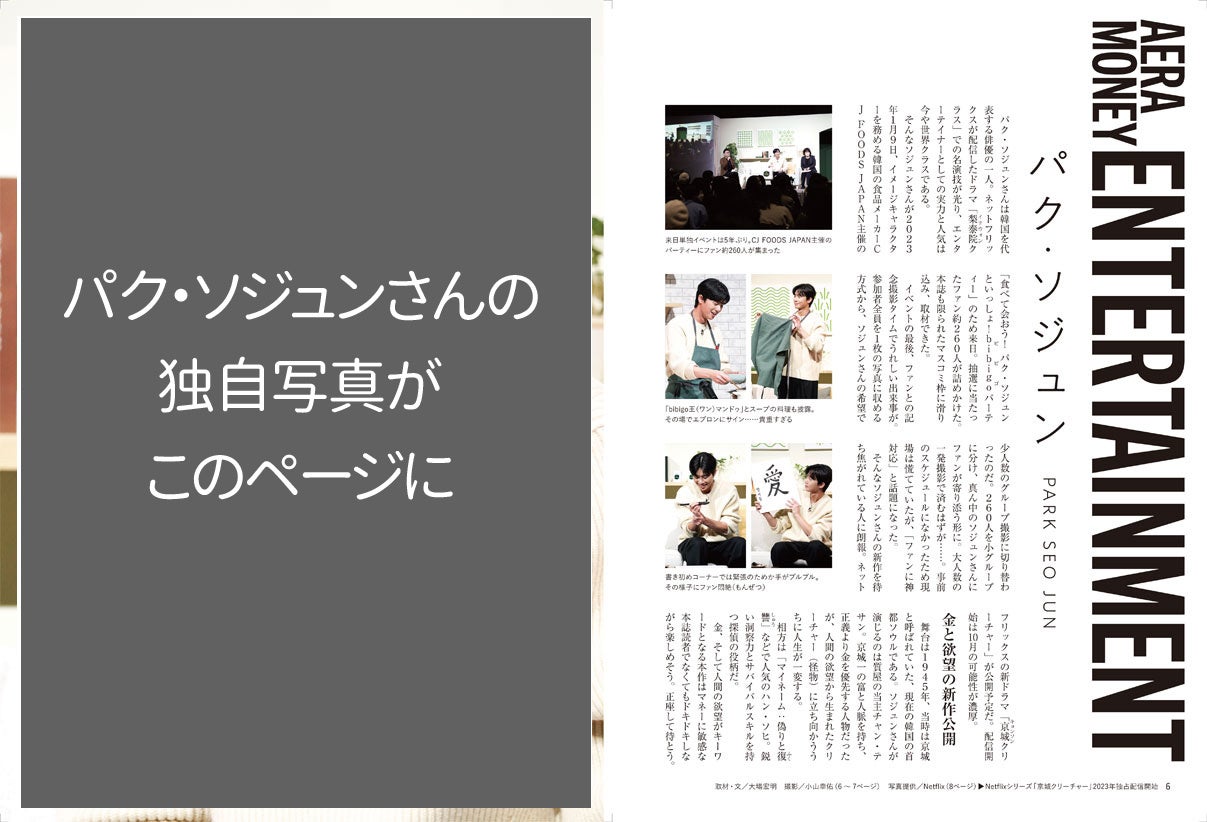 今号から新たに「AERA Moneyエンタメ」コーナーも。第1回は「梨泰院クラス」でさらなる人気者になった韓国俳優、パク・ソジュンさん!