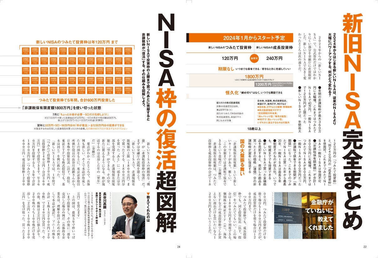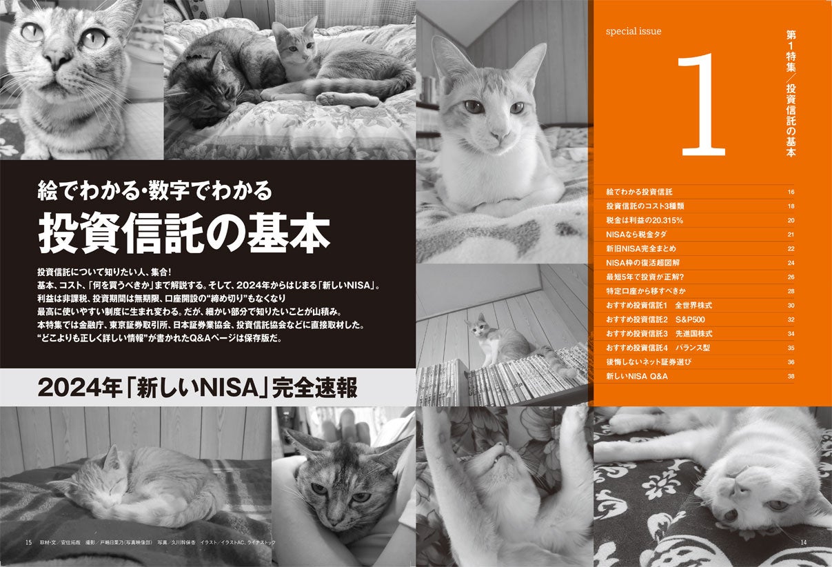 巻頭特集は「投資信託の基本」。新しいNISAのメイン金融商品であるインデックス型投資信託について、超初心者にもわかりやすく教えます。そして新しいNISAの「枠の復活」とは? 特定口座からNISA口座に移すべき?等を完全試算。速報としてお伝えします!