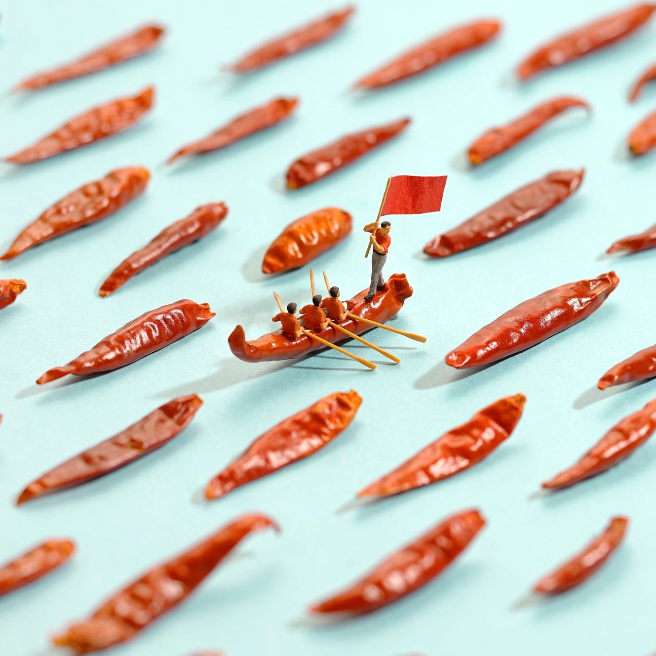 ミニチュアの視点で身近な日用品と、ジオラマ用人形を組み合わせることで別のものに見立て、ユーモアあふれる世界を日々作り出していく田中達也。インスタグラムのフォロワーは370万人を超えています。(2024年1月現在)