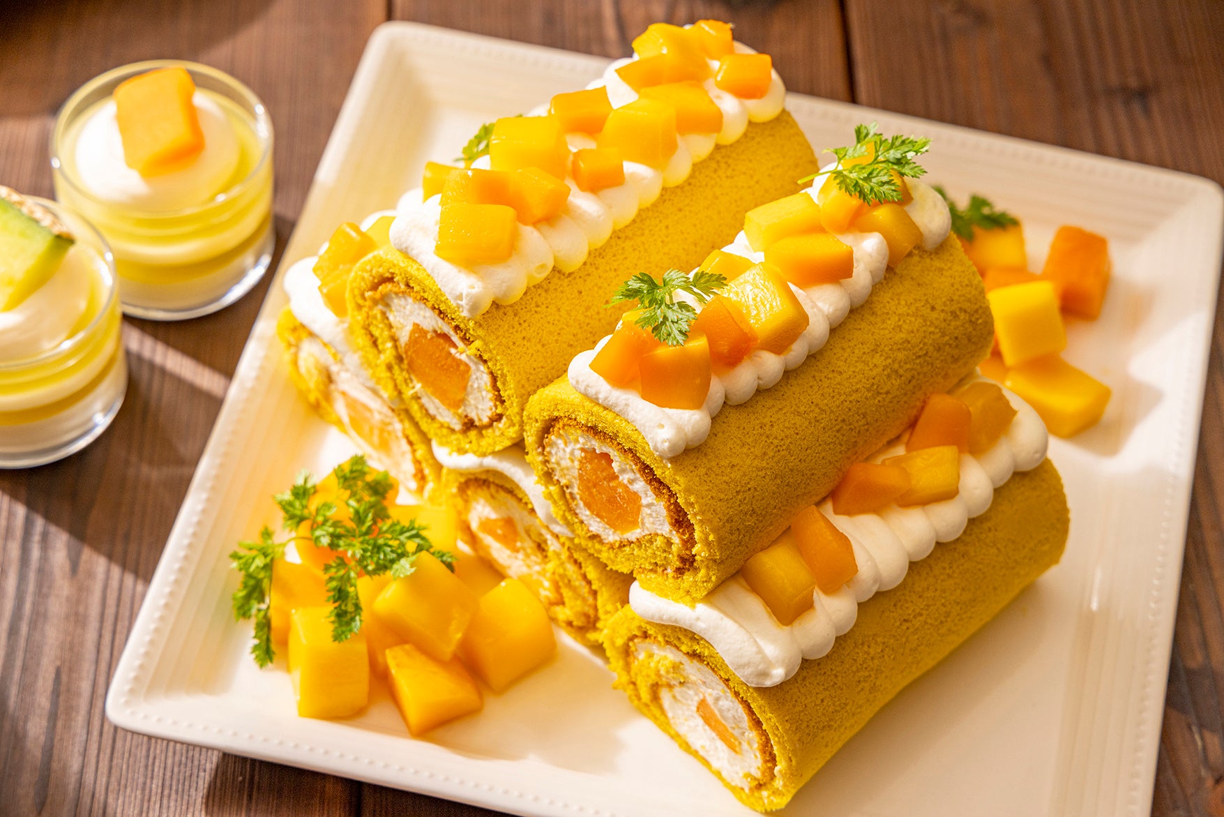 【マンゴー】マンゴーのショートケーキ、マンゴータルト、バスク風マンゴーチーズケーキ、マンゴーロールケーキ、マンゴープリン など