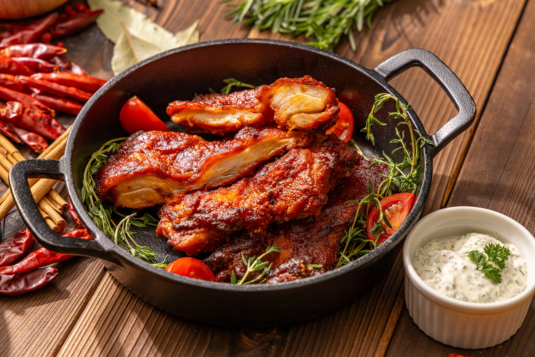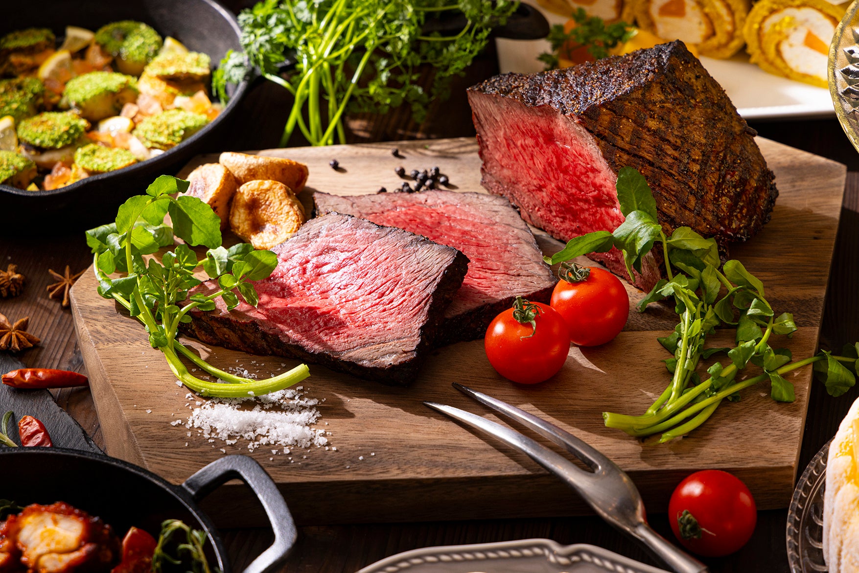 本フェアでは、初夏の到来を告げるバーベキューシーズンに合わせ、屋内でも存分に楽しめる本格的なグリル料理や肉メニューを多彩にご用意いたしました。ライブキッチンからは、シェフが目の前で焼き上げる「千葉県産牛のステーキ」をご提供。また、ビュッフェ台には、食欲を掻き立てるスパイシーな「アジア風スペアリブ」の他、ホテル特製のスパイスミックスで丁寧に味付けした肉に、サワークリーム、マヨネーズ、ガーリックをベースとするディル風味の特製「ランチドレッシング」を合わせた相性抜群の一品「テラス特製バッファローチキン」が登場します。