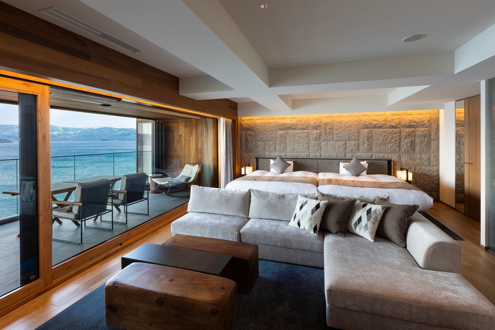 室内からはもちろん、展望風呂からも美しい湖の景観と一体になる時間をお楽しみいただけます。