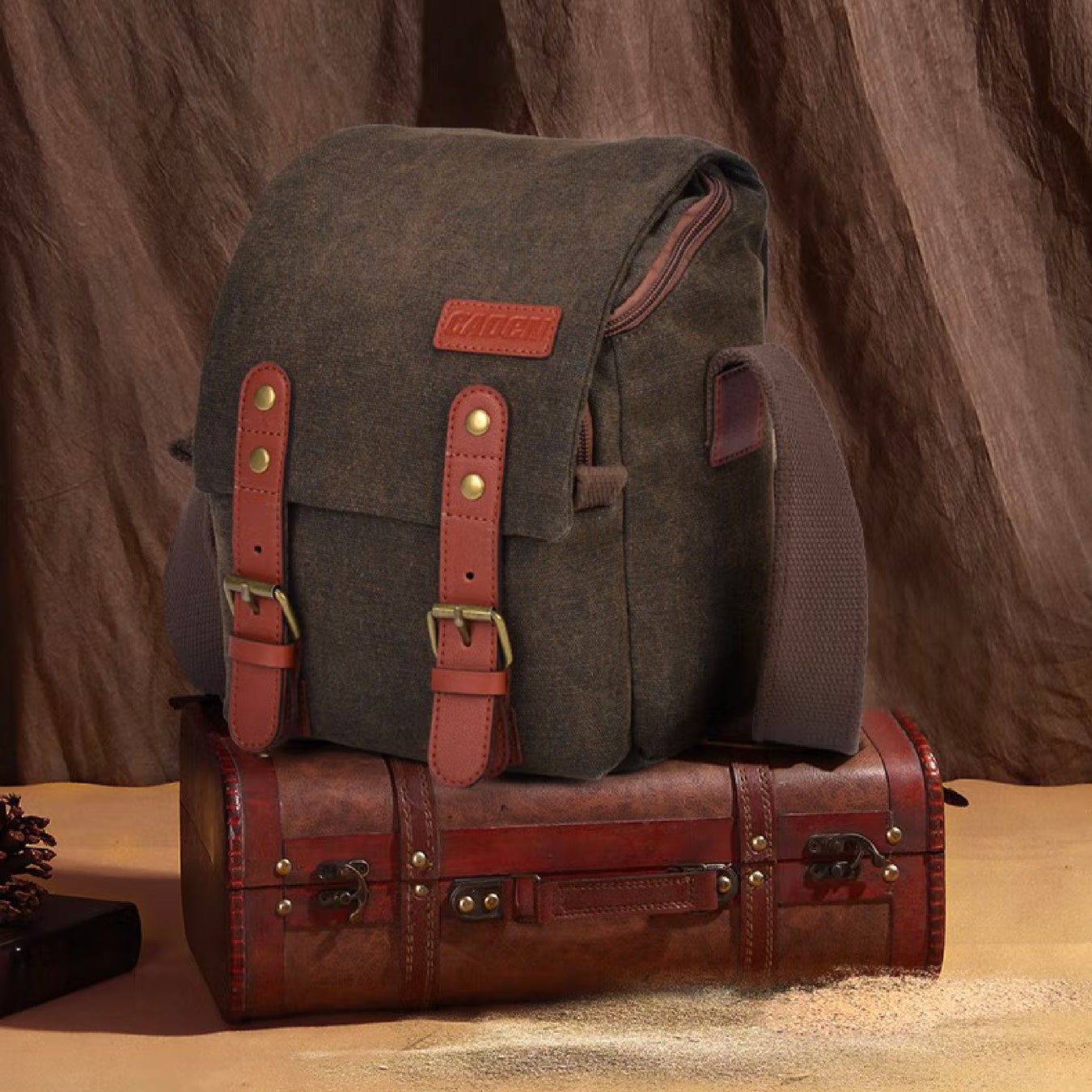 レトロな見た目ながら、一眼レフがすっぽり入る大容量デザイン!フロントポケットで小物を分類できる機能的なカメラバック「Gamp Caden」をガジェットストア「MODERN g」で販売開始