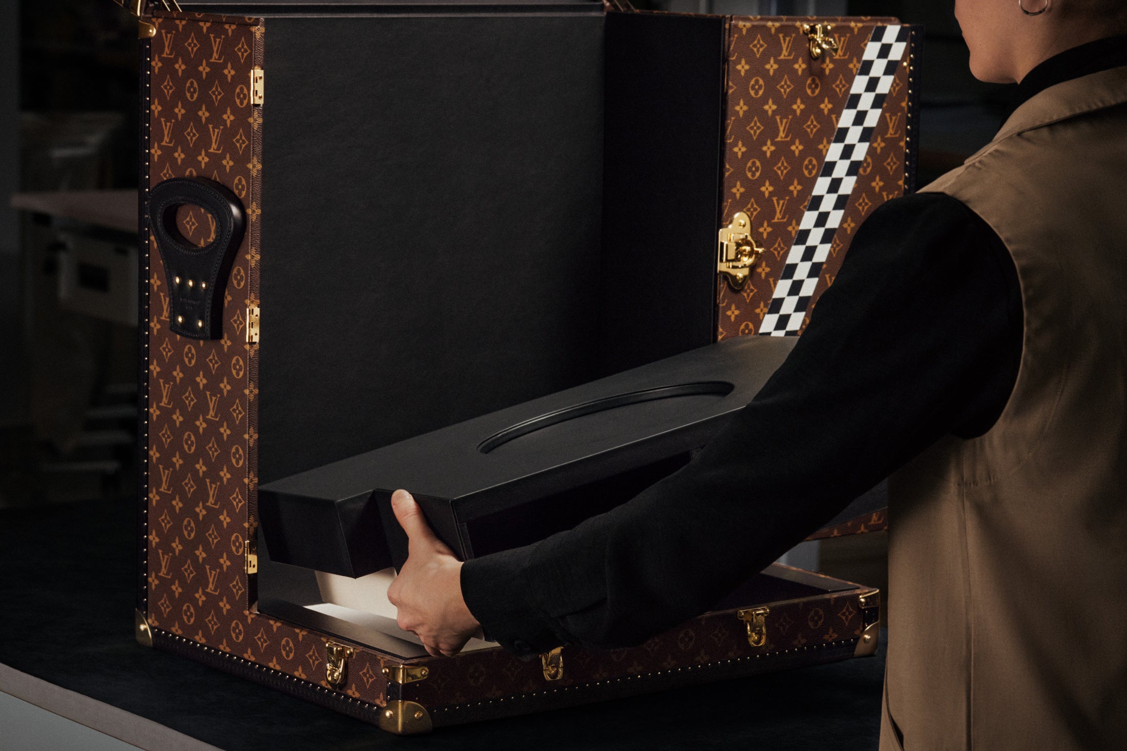 ルイ·ヴィトンがデザインしたすべての特注トランクと同様に、FIA フォーミュラ1世界選手権™のトロフィー·トランクは、パリ郊外のアニエールに佇む歴史あるルイ·ヴィトンのアトリエで経験豊かな職人たちが手作業で製作したもの。トランクの2枚のフロントパネルは、F1®カラーと、フィニッシュラインを想起させる印象的なブラックとホワイトを基調としたダミエ·モチーフで「Victory」と「Vuitton」を意味する「V」がハンドペイントで描かれています。ライニングにはトロフィーを優しく保護するブラックのレザーとマイクロファイバーを採用。外装はレザーのトリミングで仕上げられ、1860年代からルイ·ヴィトンのトランクに使用されてきたものと同じ真鍮製のコーナー金具やロック(錠前)、クラスプがあしらわれています。