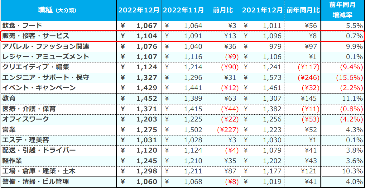 『2022年12月度 アルバイト・パート平均時給レポート』