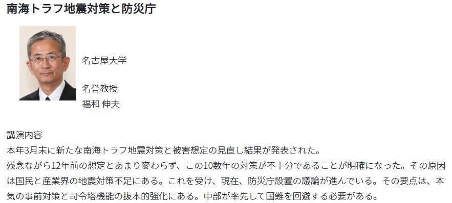【3】南海トラフ地震対策など経営者や防災担当向けに最新のオフィス防災に関するセミナーを開催