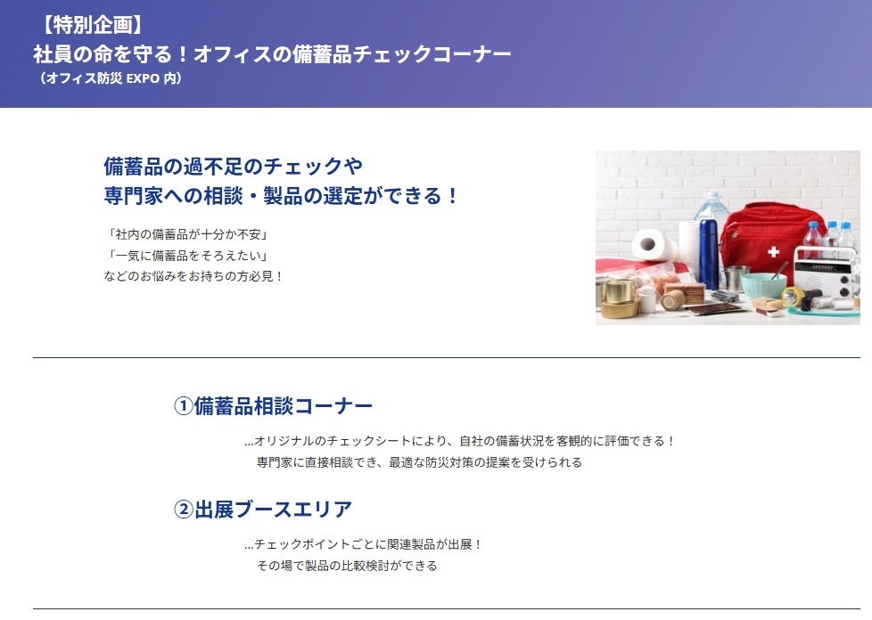 【2】【特別企画】社員の命を守る!オフィスの備蓄品チェックコーナー を設置