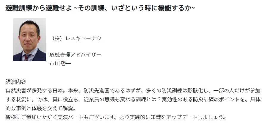 2025年07月25日(金)|11:45 ~12:45 SJ-S19 実効性のある防災訓練