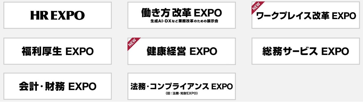 ワークプレイス改革EXPO、健康経営EXPOは新規開催となります。