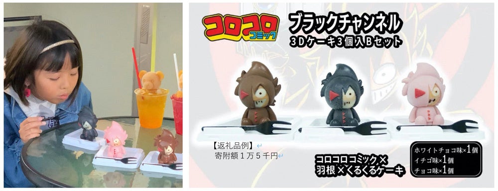 月刊コロコロコミック(小学館)が、沼津市とともに、“超楽しい”ふるさと納税の返礼品を開発するプロジェクトの第4弾。今回は、沼津市の洋菓子店である株式会社くるくる(沼津市)とタッグを組んで開発。誕生したのは、人気漫画&YouTubeアニメ「ブラックチャンネル」のキャラクター「ブラック」の“3Dデザインケーキ”。コロコロコミックの小林副編集長が、くるくる独自の立体的で細部まで表現できる技術に注目。「子どもを笑顔にしたい」というコロコロコミックとくるくる双方の思いが一致して企画開発、返礼品が誕生しました。お子様の誕生日やクリスマスなどの特別なイベントで大活躍すること間違いありません。