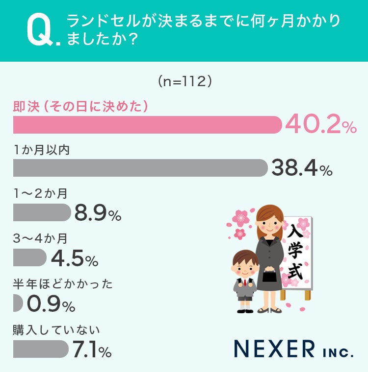 また、ランドセルの購入にかかった時間で多かったのは「即決」でした。