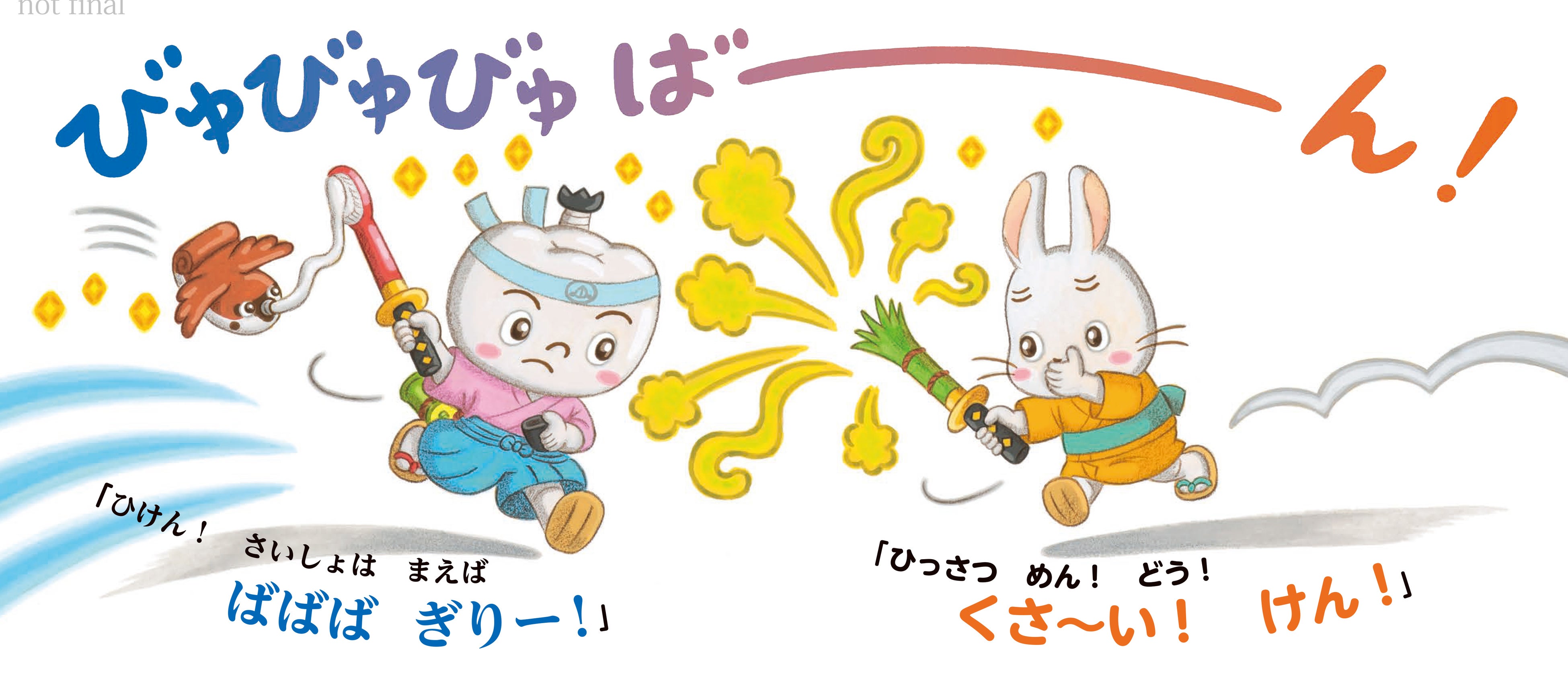 【ゲラ読み書店員さま大募集】生活の絵本で大人気の、きだに やすのり先生、わたなべ あや先生 最新作!親子で真似したくなる、かわいい歯みがき絵本。2024年7月発売予定の新刊『はみがきざむらい』
