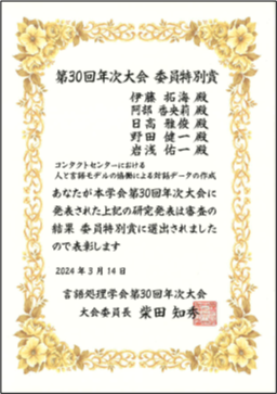 トランスコスモス、「言語処理学会第30回年次大会(NLP2024)」にて発表した論文が委員特別賞を受賞
