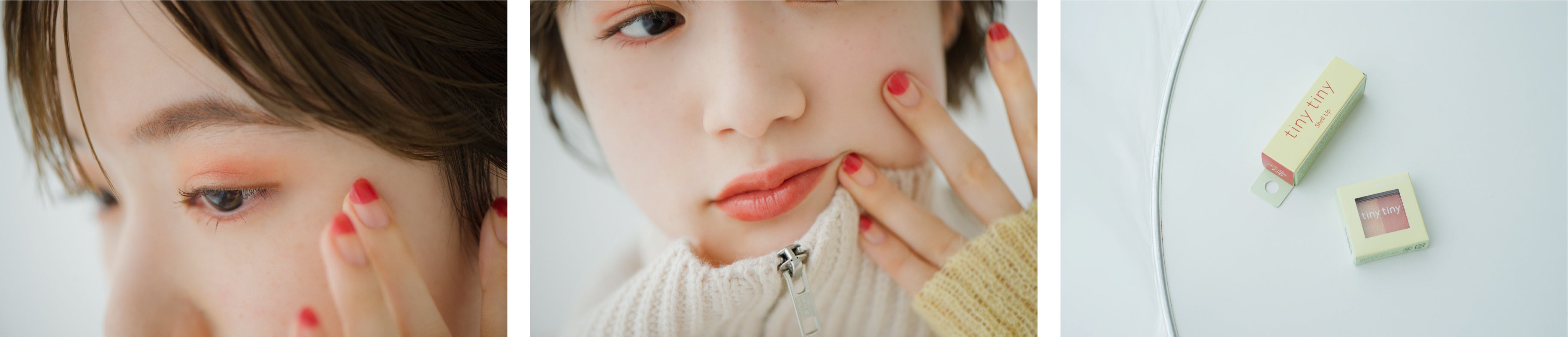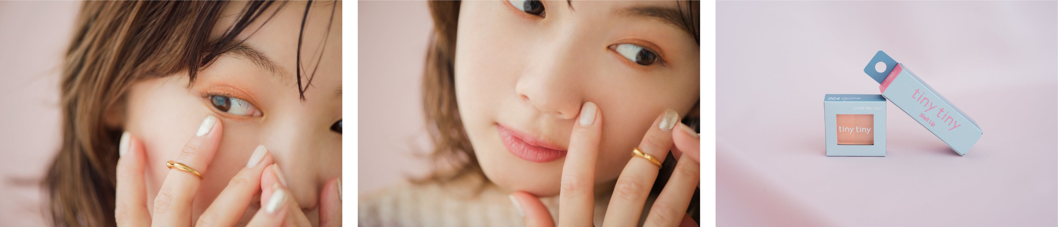 tiny tiny(ティニーティニー)は「服を着替える メイクも着替える 身の回りの小物も着替える 女の子はいつだって楽しくHAPPYでありたい。そんな願いを叶えるわたしサイズの着替える毎日。」というコンセプトのもと、コスメからアクセサリーやファッション雑貨まで豊富なラインアップで展開しています。ブランドアンバサダーの、「とみい」さんと「いしだちひろ」さんが監修した、重ね使いで目元を彩る2in1のパウダーアイシャドウ「tiny tiny ルックミーアイズ」と、なめからな塗り心地と濃密発色で唇にしっとりとなじむリップ「tiny tiny シェルリップ」を11月2日(水)に、niko and ...の国内一部店舗と公式WEBストア .st(ドットエスティ)にて発売します。