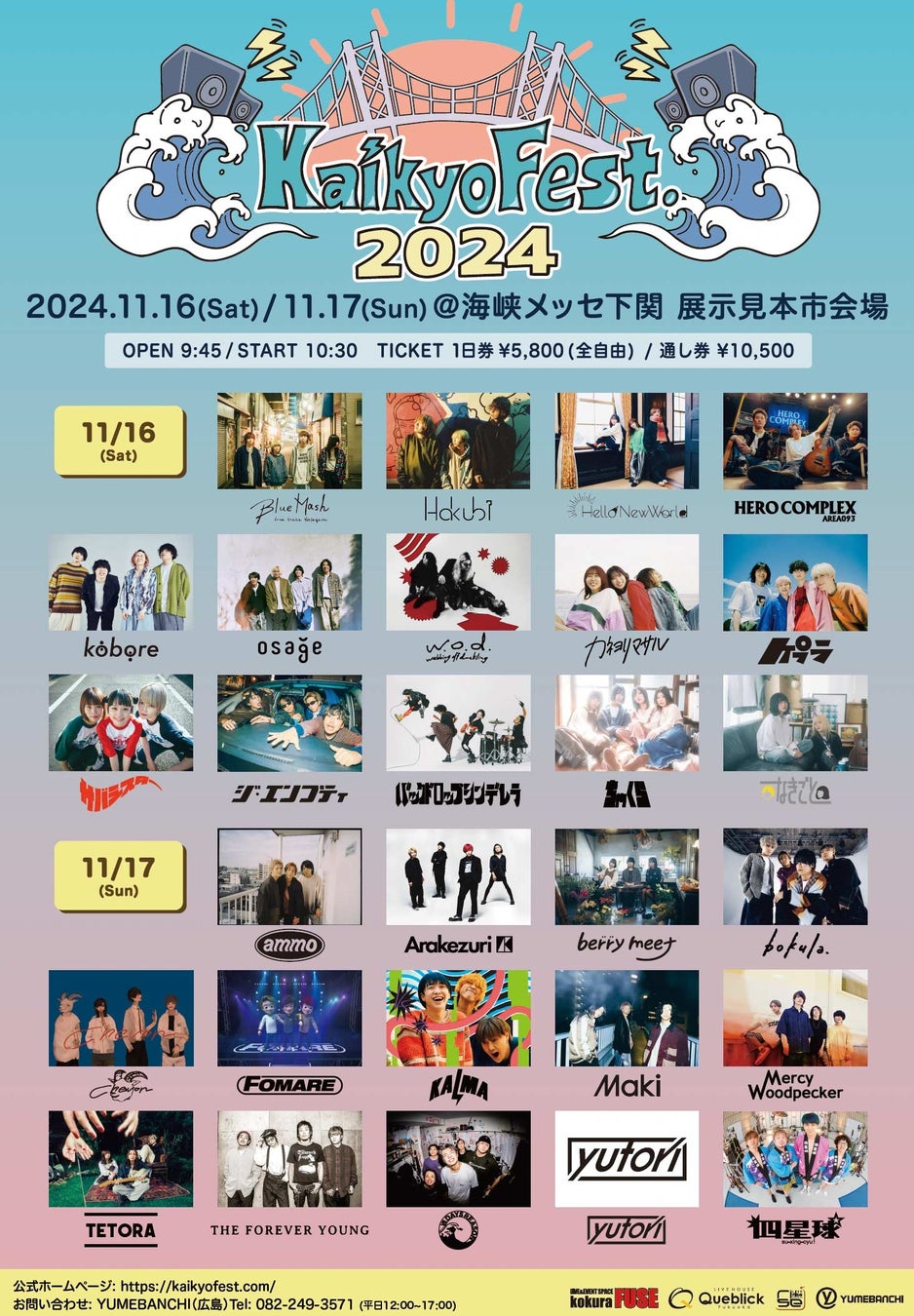 期待のユースを中心に福岡県・山口県のライブハウス 福岡Queblick /小倉FUSE /周南riseと関西・中国エリアを中心に各種イベントを展開する夢番地がタッグを組み山口県下関市にある「海峡メッセ」にて新たなイベント「Kaikyo Fest.2024」が誕生します!