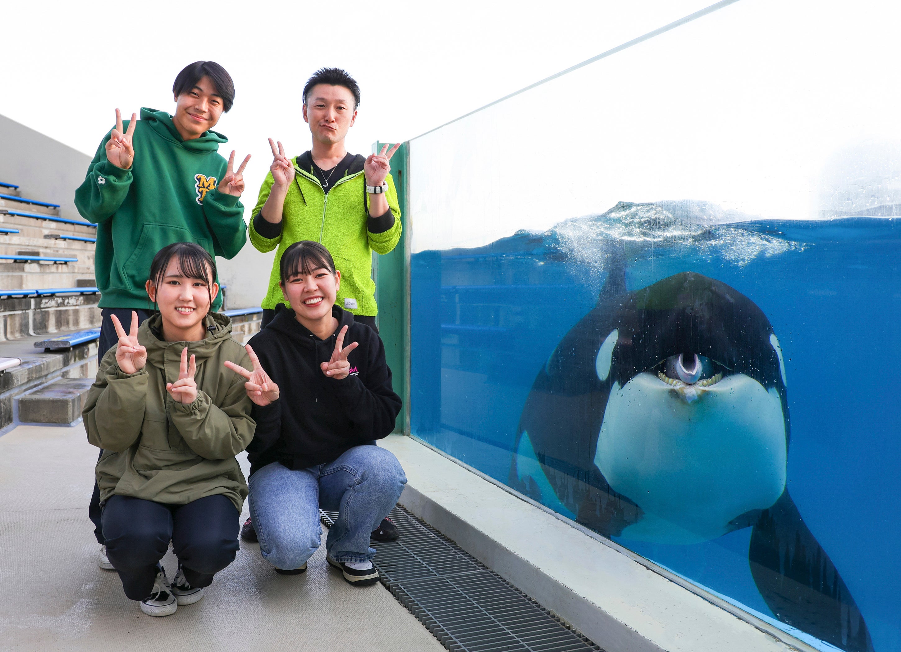 内 容:①シャチと記念写真(ガラス面前でのグループ写真を1枚プレゼント)