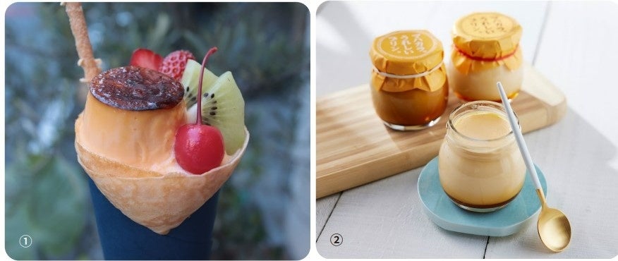 ➀クレープリン(1個)951円 ➁うれしいプリン(1個)451円
