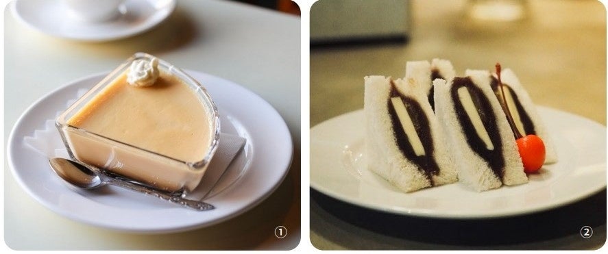 ➀シヤチルのプリン(1個)1,728円 ➁あんバタサンド(1人前)648円