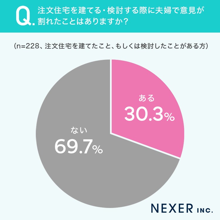 ■30.3%が、注文住宅を建てる・検討する際に夫婦で意見が割れたことが「ある」