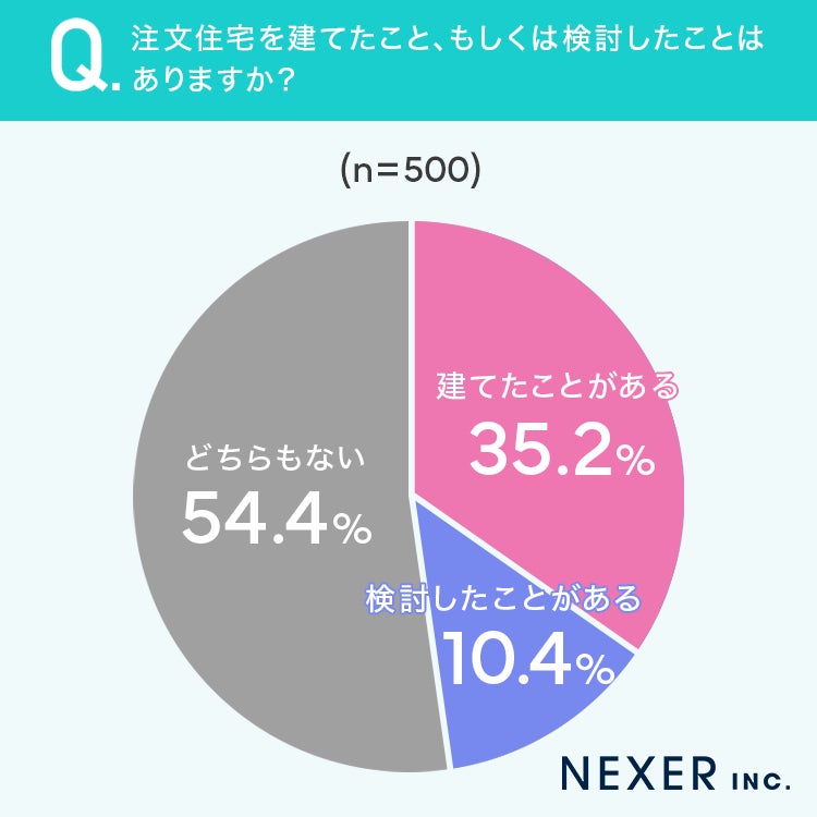 建てたことがある方は35.2%、検討したことがある方は10.4%いることが分かりました。