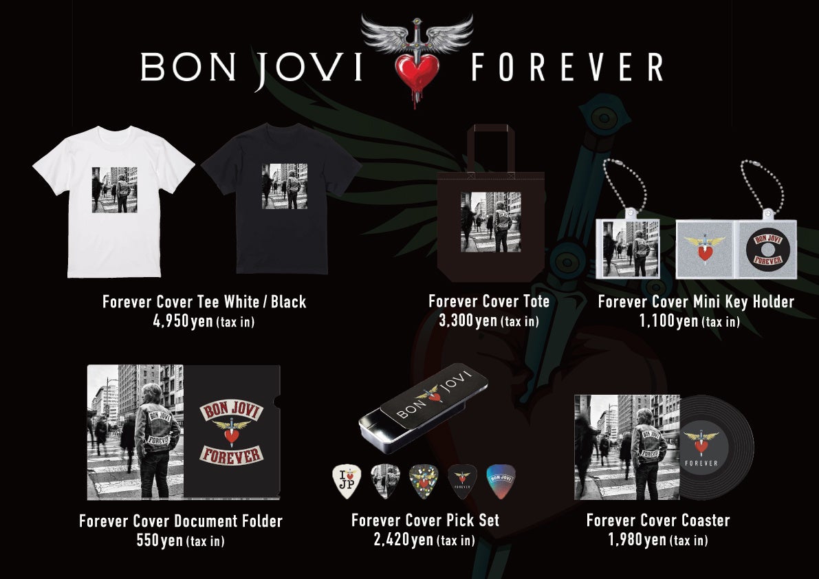 6月7日(金)から6月23日(日)まで原宿・竹下通りのUNIVERSAL MUSIC STORE にオープンするポップアップストア「BON JOVI FOREVER POP UP STORE」には、ジョンがいない『フォーエヴァー』の等身大ジャケットが登場し、ここで写真を撮れば誰でもジョンになれるフォトスポットや、バンドメンバーと一緒に写真が撮れる等身大パネルを設置しています。『フォーエヴァー』のヴィジュアルを使用したTシャツやトートバッグ、クリアファイルやキーホルダーといった定番アイテムのほか、日本ならではのてぬぐいや湯呑等の和物商品など多数のオリジナル商品を販売します。