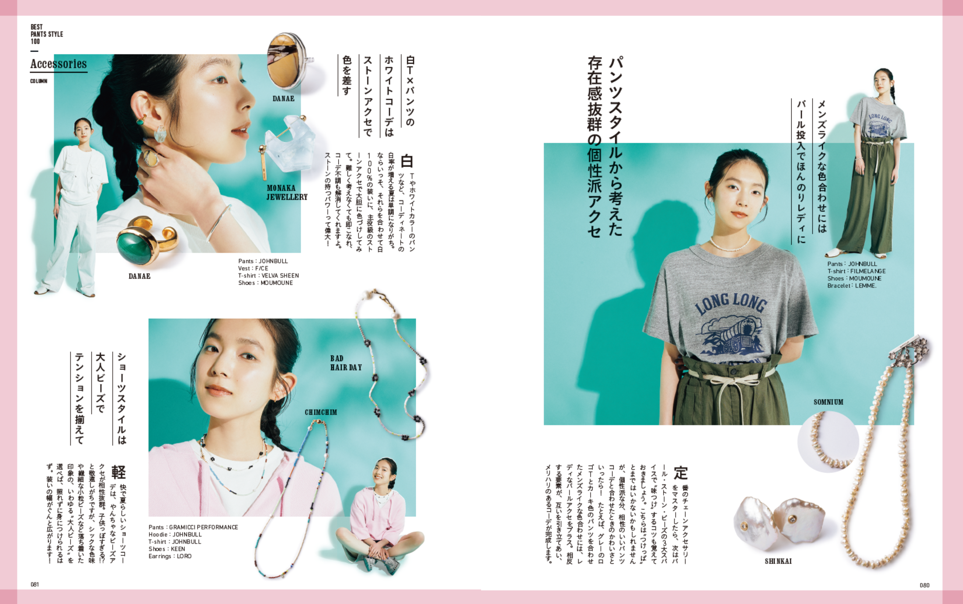 パンツにまつわるお役立ちコラムも満載。パンツに合わせる靴・靴下の選び方から、パンツスタイルの日に心得ておきたいメイクの方法、アクセサリーの選び方など、これからのお買いものガイドとしても優秀です。