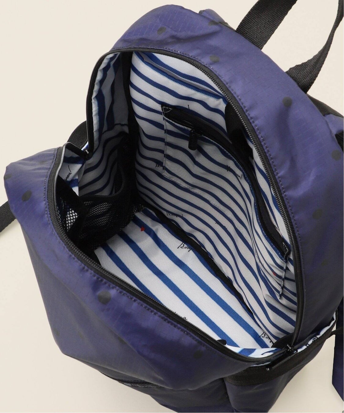 LeSportsacのシグネチャー素材でもあるリップストップナイロン。軽量で洗える、圧倒的な機能美を誇ります。今回のコラボももちろん丸洗い可能です。