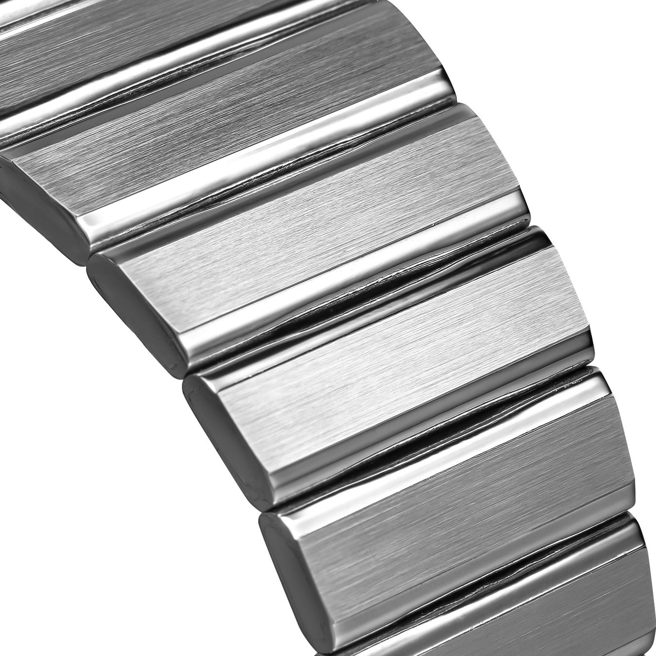 ケースと調和するサテン仕上げのステンレススチールブレスレットは、シンプルながらも都会的な印象に。また19mmのラグ幅に合わせた堅牢な設計により、どんな腕元にもしっかり沿ってくれる快適な装着感を実現します。