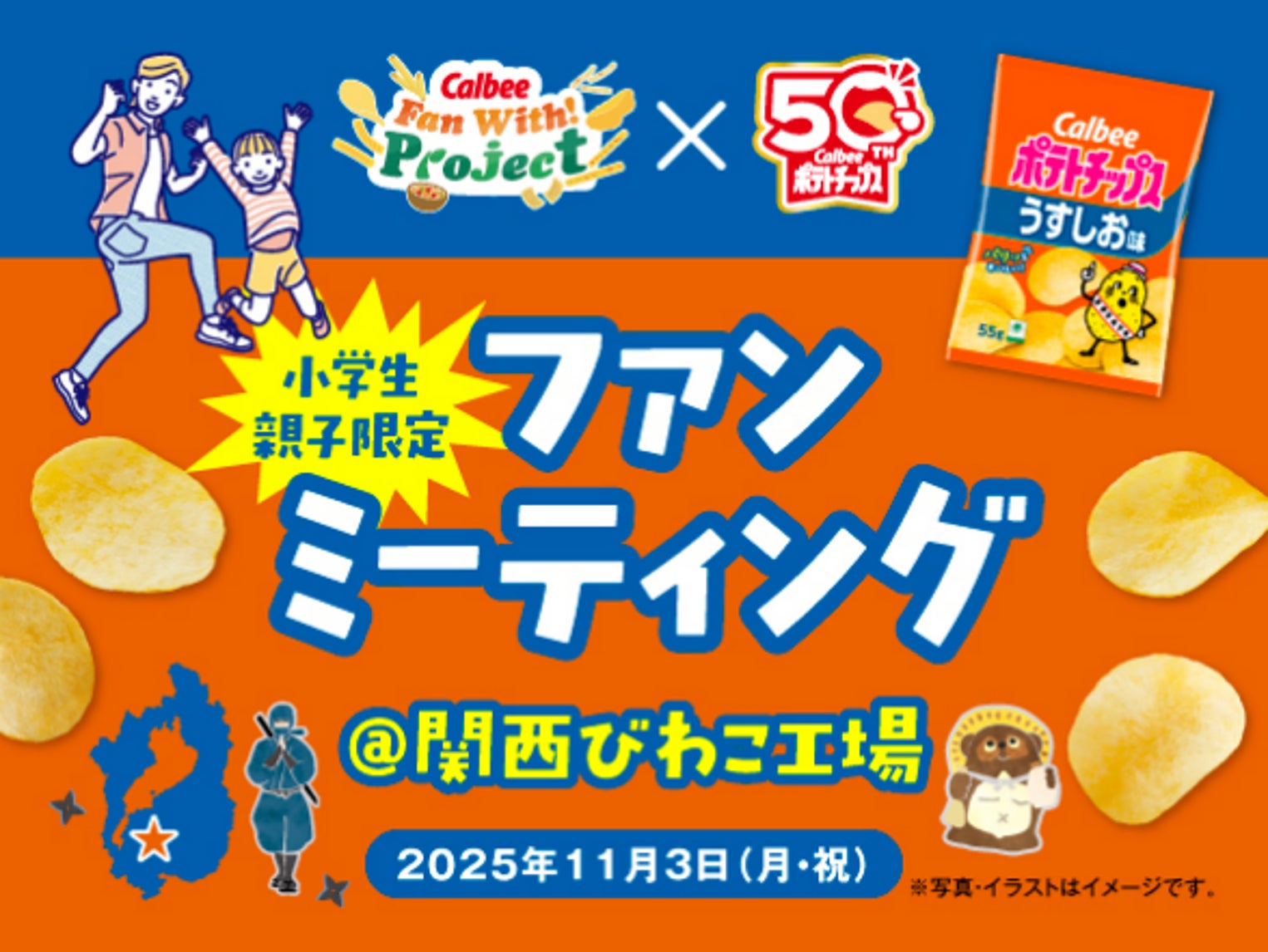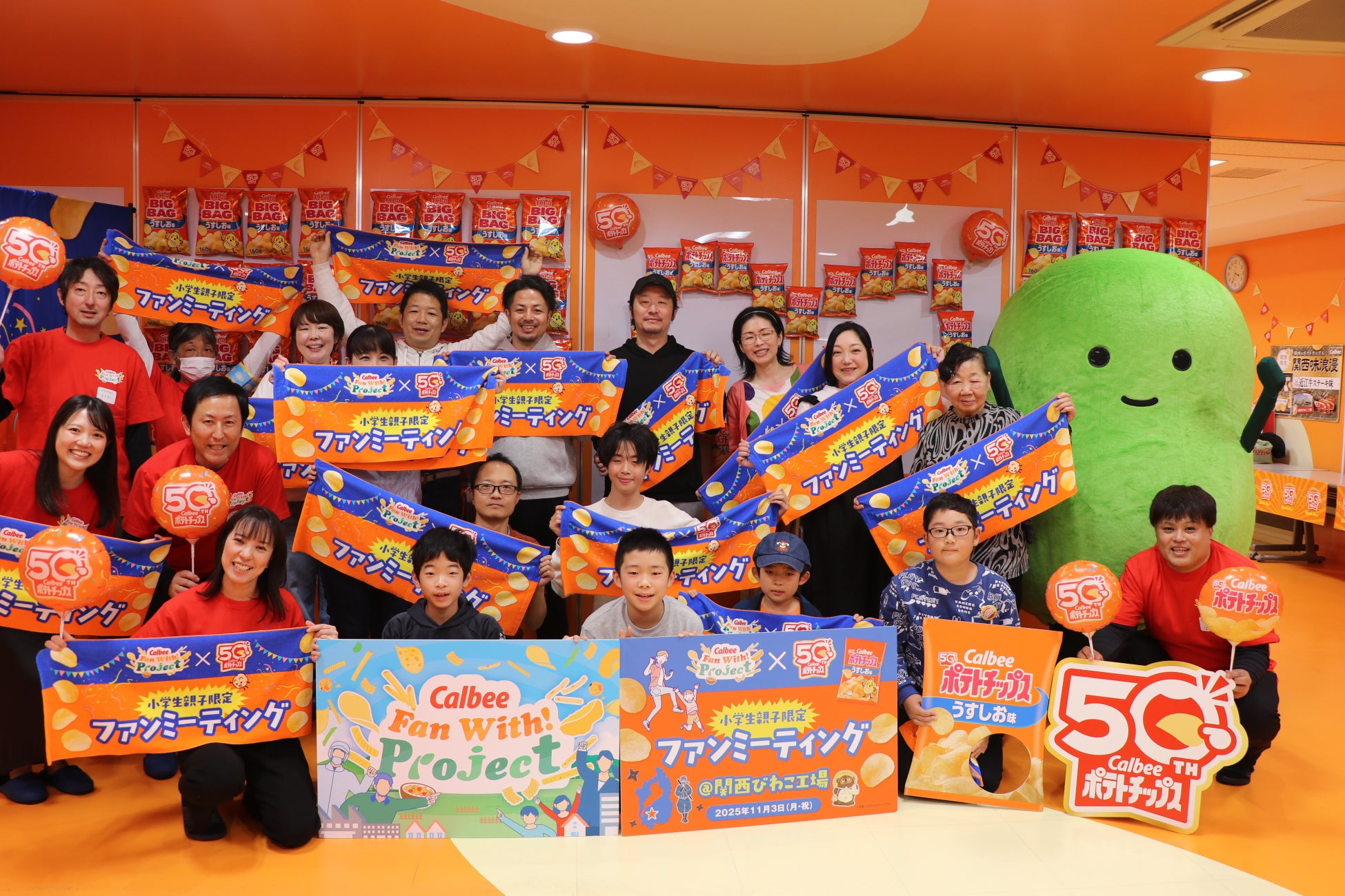 カルビー株式会社(本社:東京都千代田区、代表取締役社長兼CEO:江原 信)は、カルビーファンの皆さまと交流するCalbee『Fan With! Project』の一環として、2025年11月3日(月・祝)に滋賀県湖南市の関西びわこ工場で「カルビーポテトチップス」発売50周年を記念した小学生親子限定ファンミーティングを開催しましたので、お知らせします。イベントには約30名のファンの皆さまに参加いただきました。