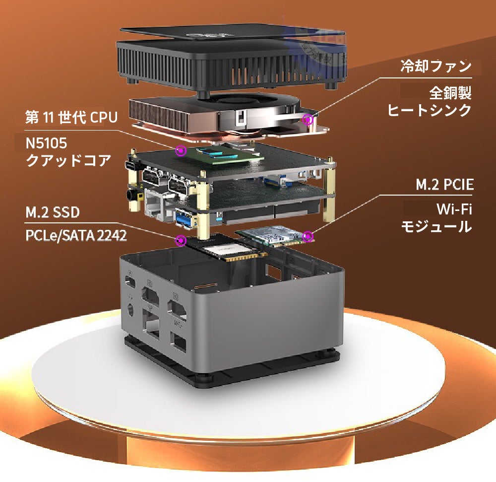 - 11世代intel®️Jasper Lake N5105 クアッドコアCPU、8GBメモリ、2.4GHz/5GHz両WiFi対応、Bluetooth 4.2