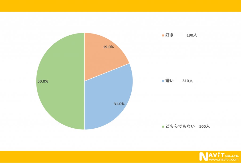 「あなたは駅の階段を使うのは好きですか?」という質問については、「好き」が19.0%、「嫌い」が31.0%、「どちらでもない」が50.0%という結果になりました。