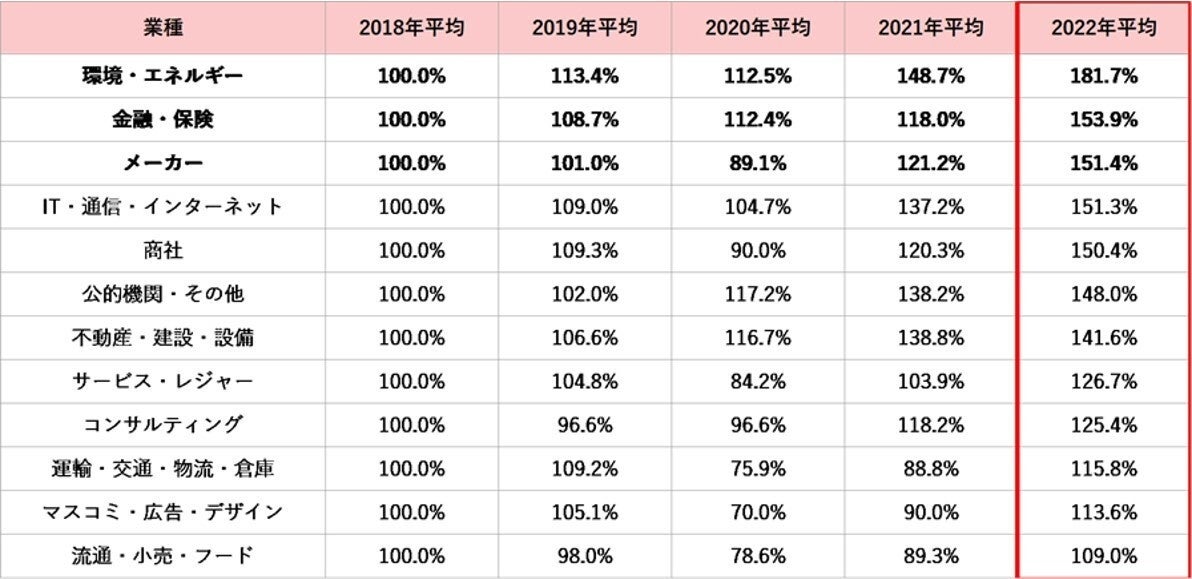 ~2022年 業種別の傾向~