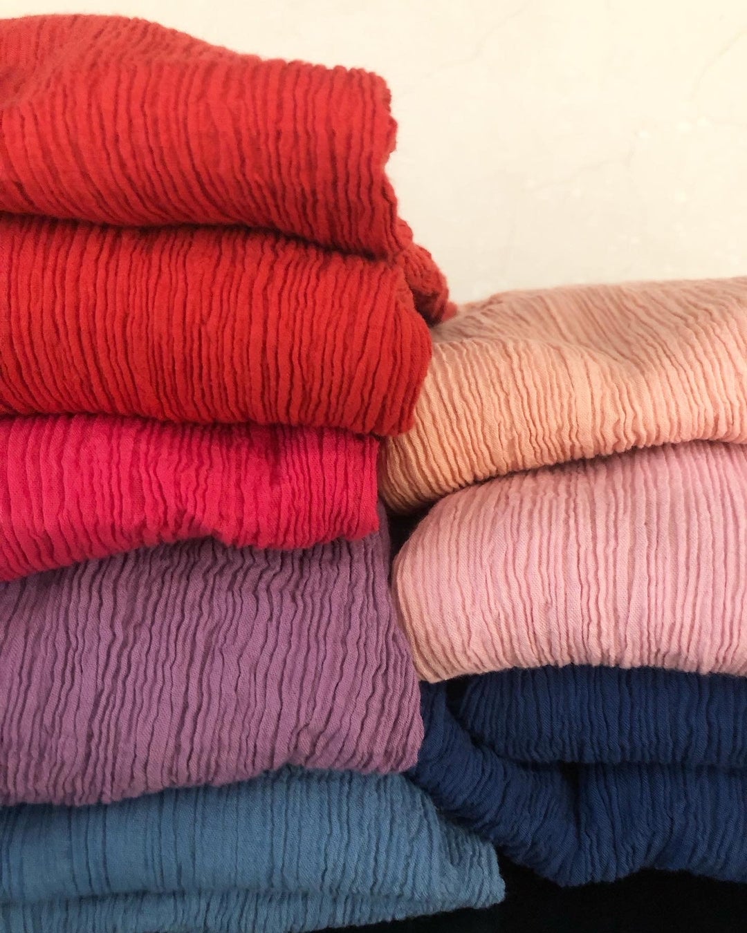 生地は天然素材の綿と麻のみを使用し、UVカットや防シワなどの加工は一切していません。また、ドラム缶ほどのサイズの小回りが効く染色機で、毎日12色、1週間で60色を染めています。時に染料を足しながら1日同じ水を使用して洋服を染め上げており、水の色がほぼ透明になるまで染料を使い切っています。商品すべての色が異なる一期一会の洋服です。