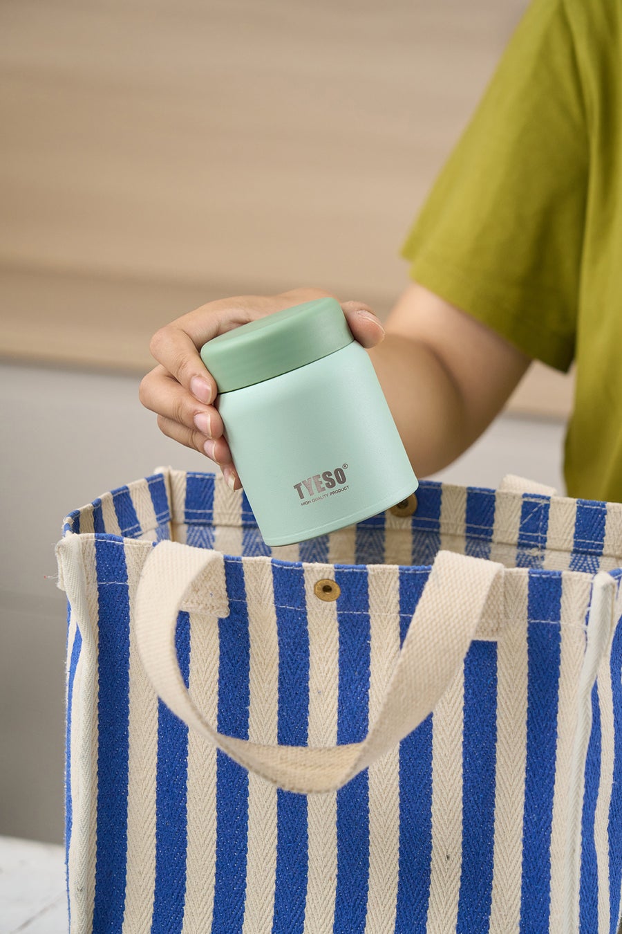 いつものお弁当にプラスして、スープやヨーグルト、冷やしたフルーツなどの持ち運びに便利なサイズのジャー。