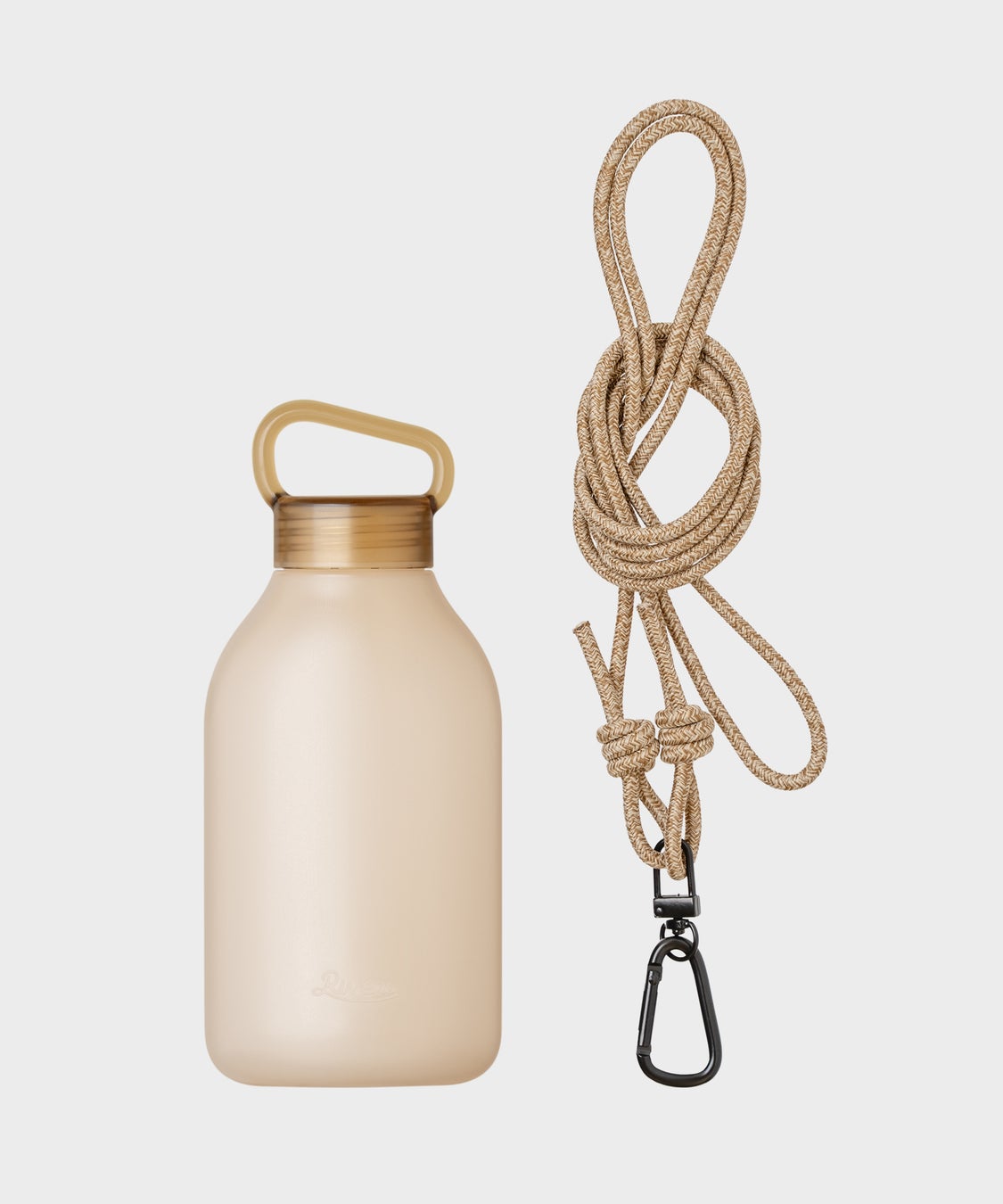 わずか51gの本体で、付属のカラビナやストラップを使って身に着けやすいソフトボトル。