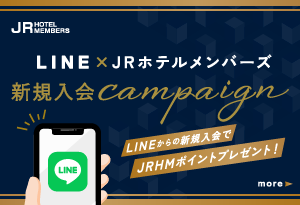 本キャンペーンは、キャンペーン期間中にLINEから新規会員登録していただいたJRホテルメンバーズ会員さまを対象に、JRホテルメンバーズポイント「300ポイント」をもれなくプレゼントいたします。