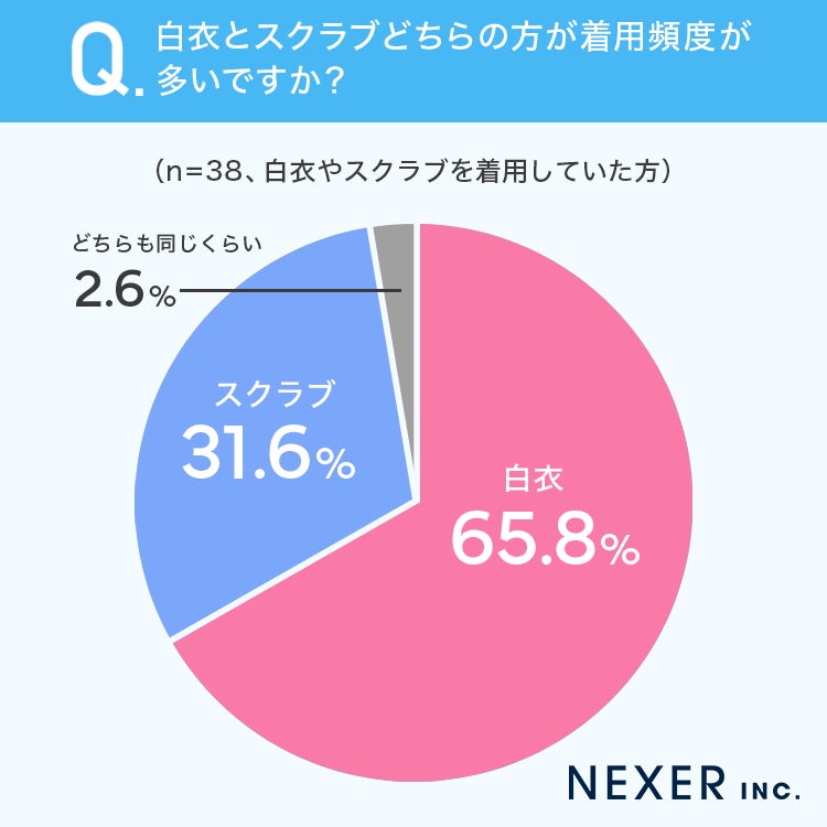 65.8%の方が「白衣」の方が着用頻度が多い、と回答しています。