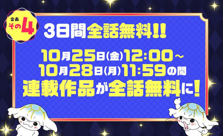 10/25(金)12:00~10/28(月)11:59までの3日間、くらげバンチで連載中の40作品以上が全話無料に!