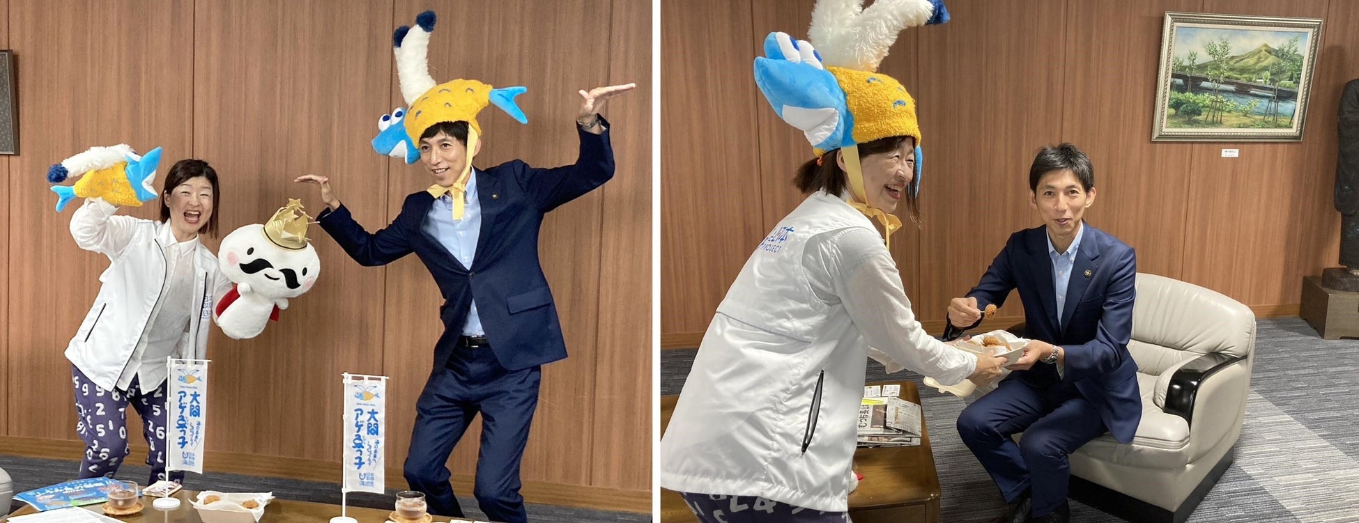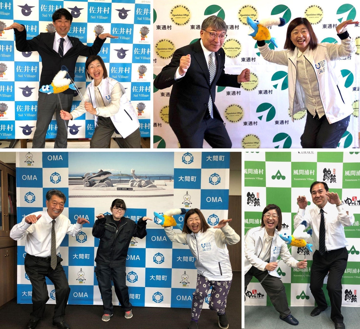 津軽海峡に面した下北半島の全5市町村とガッチリ連携!<大間アゲ魚っ子キャンペーン>【下北半島首長アゲアゲ表敬キャラバン】を行いました