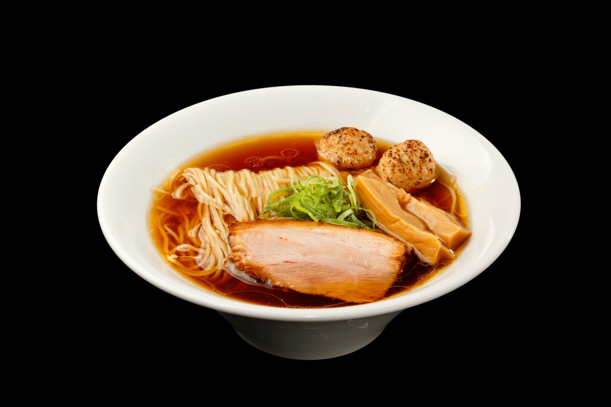 これぞ旨味の塊。熟成醤油に豚の旨味を凝縮させたスープにもちもち太麺をからませた中毒性のあるヤミツキの一杯。
