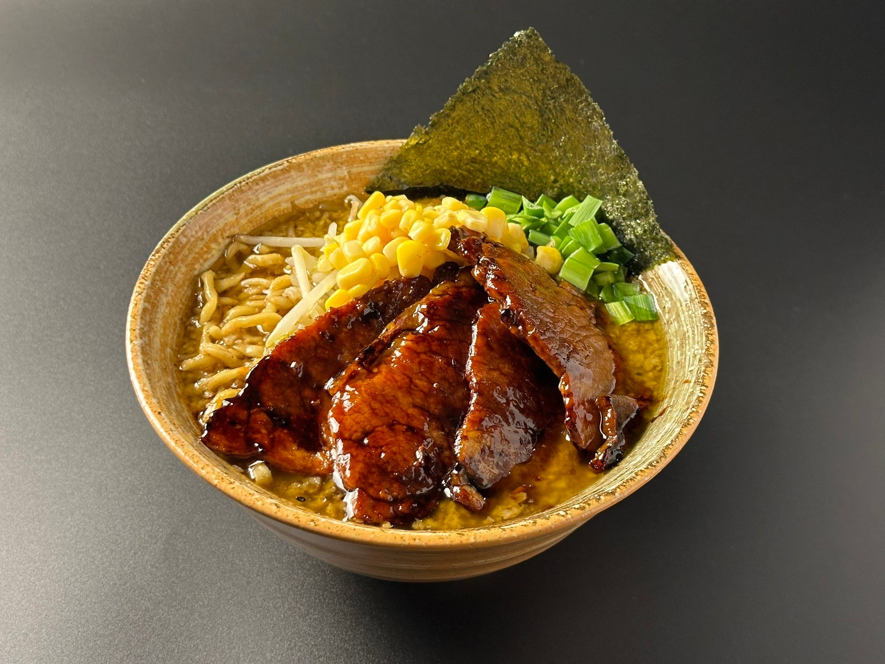 国内外イベント等で売上1位やグランプリを獲得し続ける「新感覚札幌味噌らぁめん」。ジャガイモを使ったトロトロ濃厚な味噌スープと豪快に炙った豚バラチャーシューがたまらない一杯。