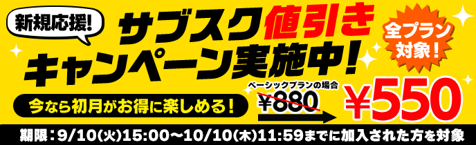 サブスクリプション割引キャンペーンを実施中!キャンペーン期間中にサブスクリプション加入で、初月料金が最大1,100円割引!