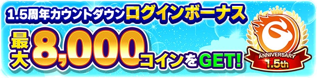 1.5周年までのカウントダウンとして、特別なログインボーナスを開催!7日間ログインして最大8,000コインをGETしよう!