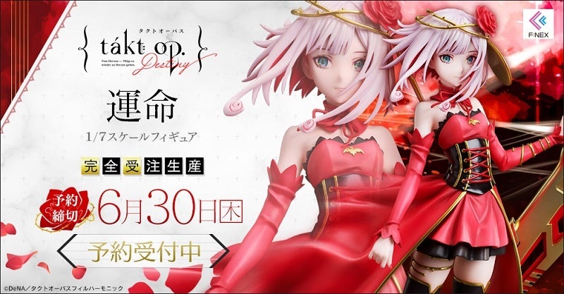 フリュー株式会社(本社:東京都渋谷区、代表取締役社長:三嶋隆、以下フリュー)は、高品質ホビーブランド「F:NEX(フェネクス)」の新商品として、TVアニメ「takt op.Destiny(タクトオーパス デスティニー)」より 『運命1/7スケールフィギュア』の発売を決定いたしました。本日4月30日(土)より、フリューが運営するホビーECサイト『F:NEX』(URL:https://fnex.jp/)ほか「MAPPA ONLINE SHOP」(https://mappa-onlineshop.com/)でも予約が可能となります。