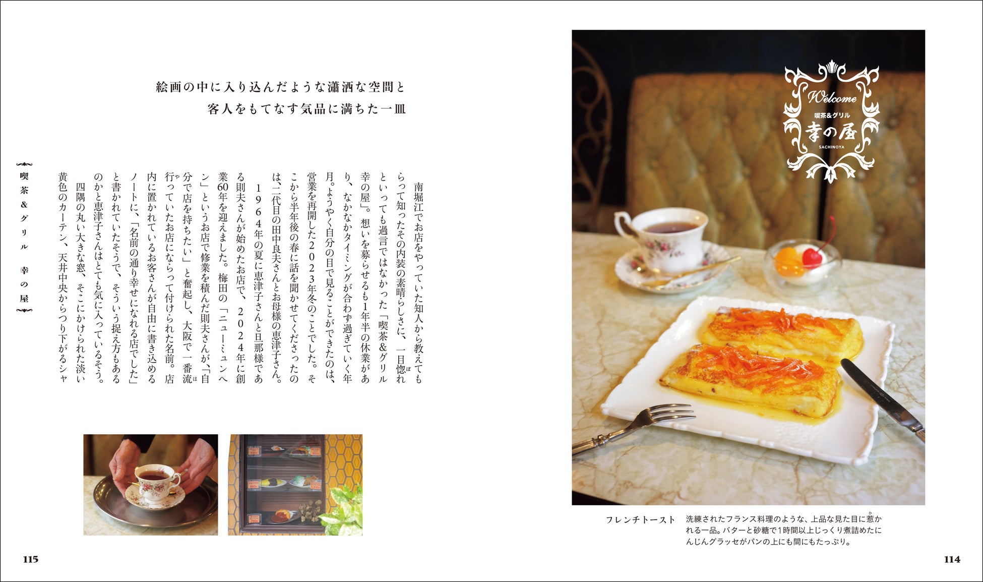 パフェ、ゼリー、プリン、トースト、ホットケーキ、飲み物など、あまいものを切り口に、大阪府内に存在する名喫茶を紹介しています。