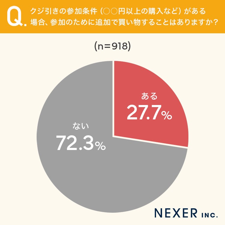 27.7%と3割近くの方が、クジ引きに参加するために追加で買い物することが「ある」と回答しています。